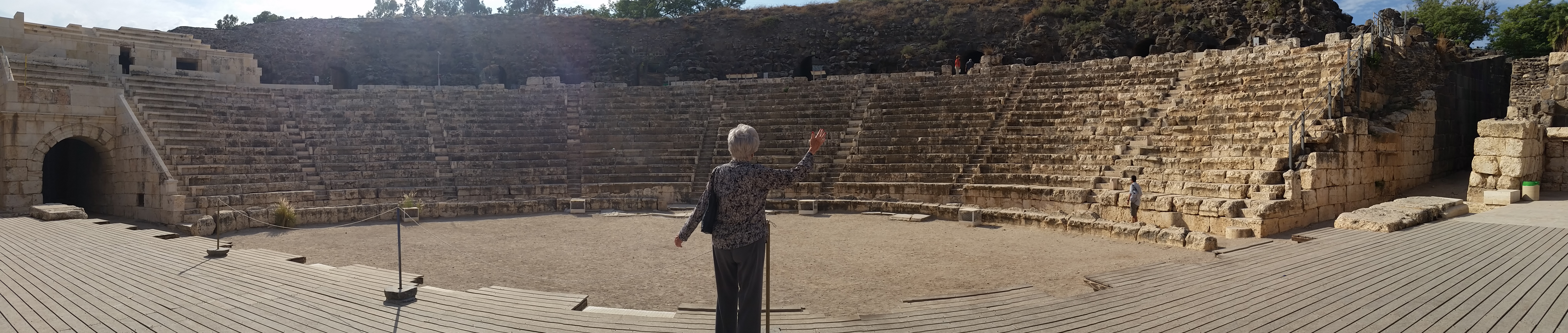Friday we were up and hit the road early. We spent some time in the ruins of an old Kursi church that dated back the time of Empress Helen, the mother of Constantinople, and the one responsible for many of the churches built on holy sites around Israel and other parts of the middle east. Then we drove to the ruins at Bat She’an, where I took a great picture of AJ in the excavated amphitheater from the year 200 AD: