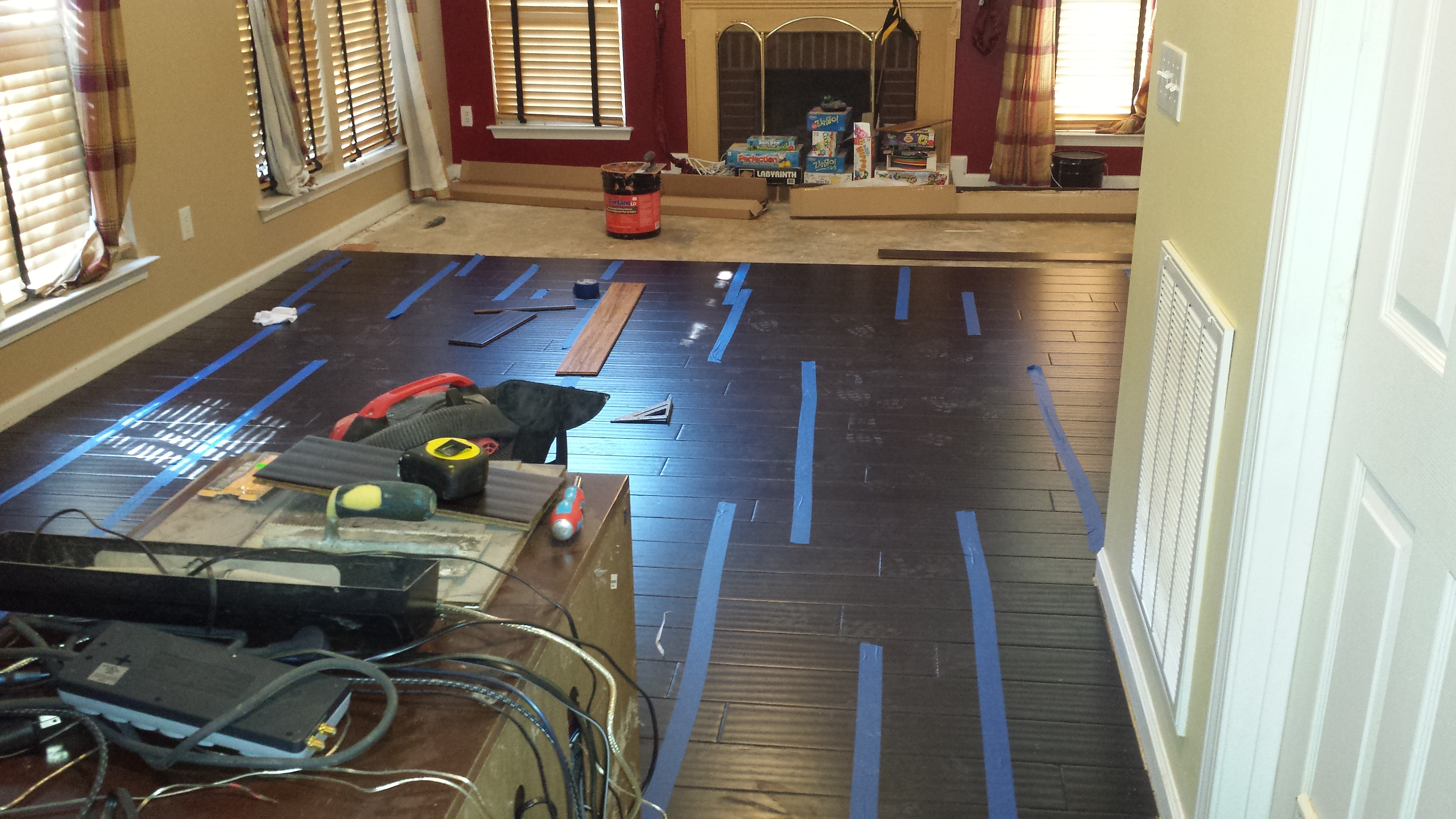 What kind of flooring? Is it Allure Plank that slots into each other or is it real hardwood? We are attempting to finally put flooirng in our basement after the Hurricane, adn we have been toying with HD’s Allure Plank Flooring, Bamboo Dark. It’s the cheapest option (apart from garage paint lol!).