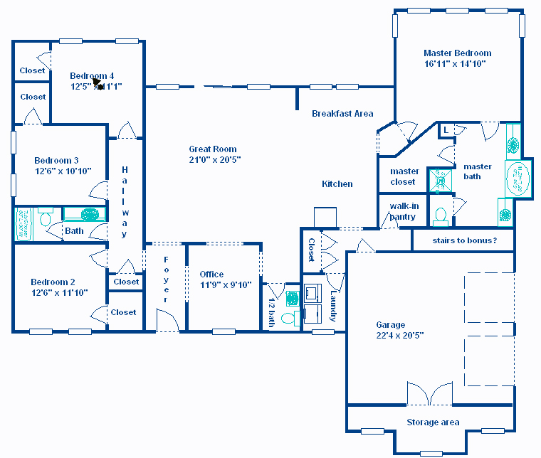 Lastly, I loaded up my floorplan software onto our computer again and messed around with the floorplan that I “created” last week. As my dad said in the comments, the dimensions were all wonky between the two sides. Now they aren’t – and the house looks good. Bear in mind my floorplan doesn’t show the kitchen in all it’s laid out glory because I’ve only had time to do the actual layout of the house – but the basic gist of the floorplan is there, and I love it (click to make bigger).