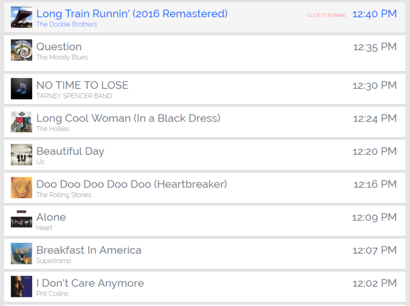 So I checked to see what music they’ve played in the past hour. And look at this list: